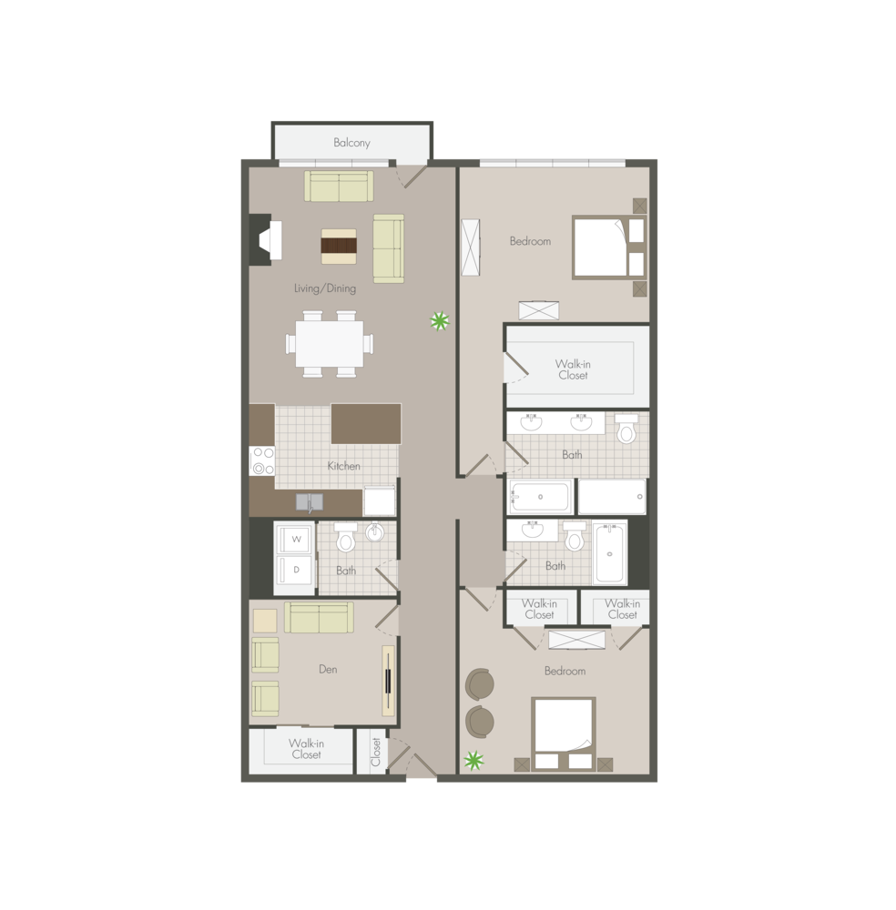 2 Bed Den | 2.5 Bath | 1604 SQ. FT.South Tower B4